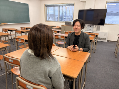 2026.02.13 二者面談実施中! 楽しくおしゃべりしましょう(^^)/ 中等部では登校した際に二者面談を行っています(^^)/勉強のことや最近はまっていること聞いてみたいことなど…なんでも気軽にお話してくださいね♪