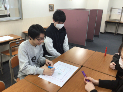 中等部HRでは、中等部生同士や職員、高校生との交流を図るゲームをしています。