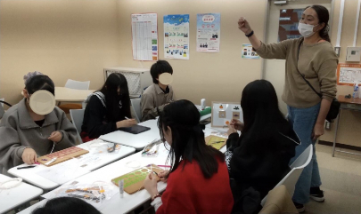 ペーパークイリングとは、細長い紙を巻いて形を整え、花や模様などのデザインを作るクラフトで、繊細で美しい仕上がりになるのが特徴です。今回は保護者の方で手芸が得意な方に講師として来ていただき、丁寧に教えてくださいました。