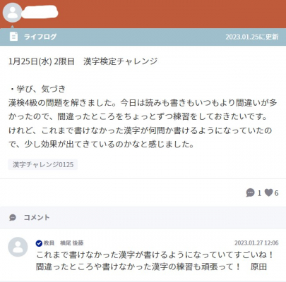 『ライフログ』とは、学習の記録や振り返りをデータで記録する第一学院内のブログです。