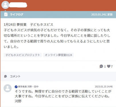 生徒たちは授業が終わると、学びや気づきをライフログに入力します。