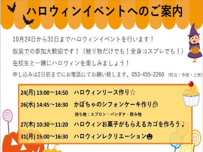 10月24日(月)~10月31日(月)第一学院浜松キャンパスではハロウィンイベントを開催します。