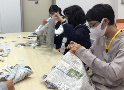 11月の中等部では、新聞紙を使って交流する時間を設けました!