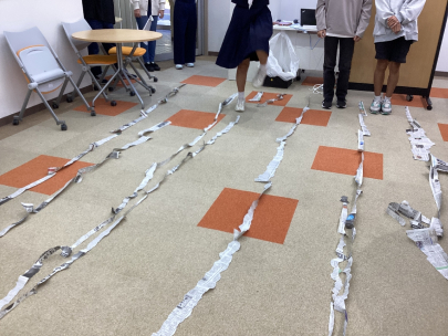 ミッション1▶▶▶新聞紙をながーく破ろう(一枚の新聞紙をどれだけ長く敗れるか勝負)