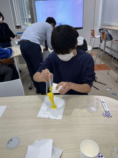 今回は鎌田先生で、「スライムづくり」に挑戦しました。(まさかの理科実験)