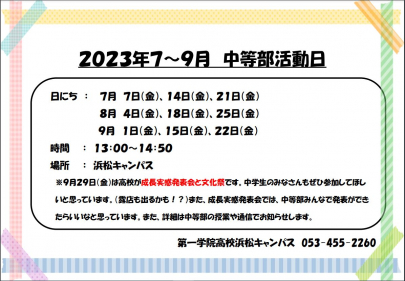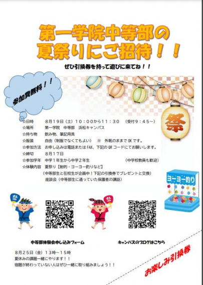 第一学院中等部では、「夏祭り」を企画しております。