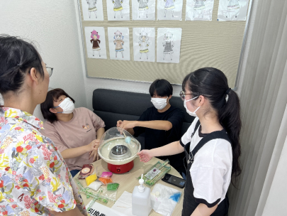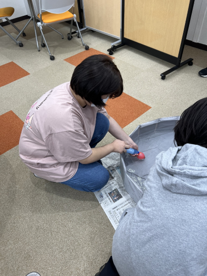 ヨーヨー釣りの準備では、なかなか上手に風船を膨らますことができず、苦戦しました。