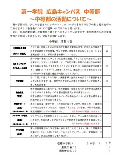 第一学院中等部は「生徒第一」「1/1の教育」の想いを大切に、「社会で活躍できる人づくり」に全力で取り組んでいます。