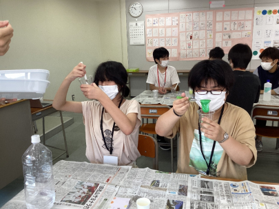いろんな原料の量を調整しながらオリジナルのスライムを作ってもらいました!