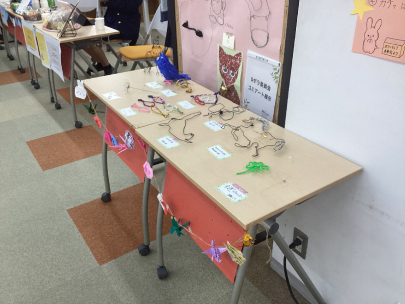 中等部生のワイヤーアートも展示しており、たくさんの来校者に見てもらいました!