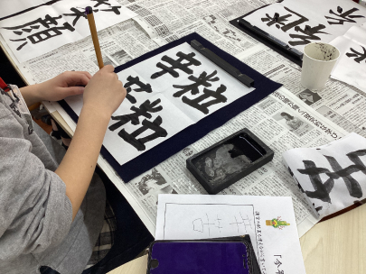 中学校や小学校の書道の授業とは違い、好きな言葉や文字を書いてもらいました!