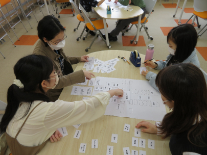簡単なゲームをしたり、時にはグループで協力してワークを行ったりします。