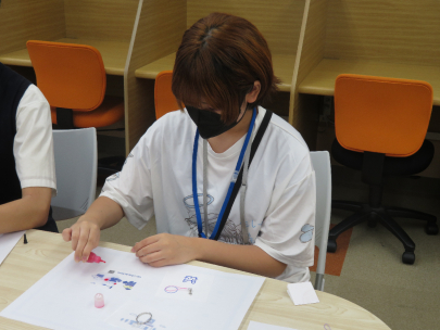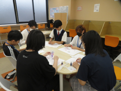 レジン体験では、オリジナルストラップの作成を行いました。同じ中学生同士やピアサポーターの先輩たちと、会話も楽しみながら作成をしていました。
