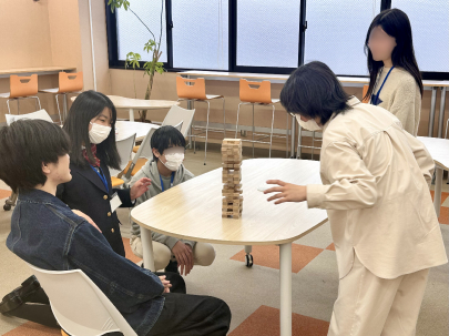 中等部でも、実際に在校生たちが遊んでいる「UNO」や「トランプ」、「ジェンガ」などのボードゲームをピアサポーターの先輩たちと取り組みました♪