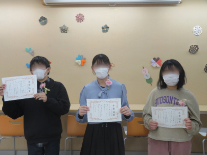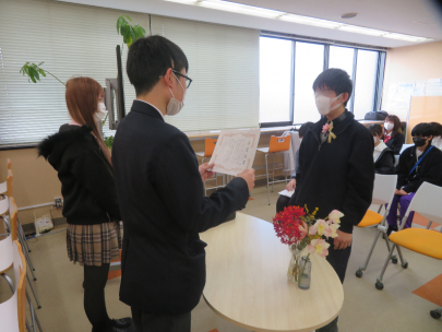 4月から高校生になる中学3年生達には、ピアサポーターの先輩からオリジナルの賞状を授与してもらいました!