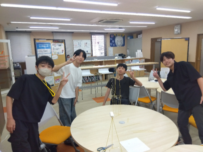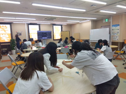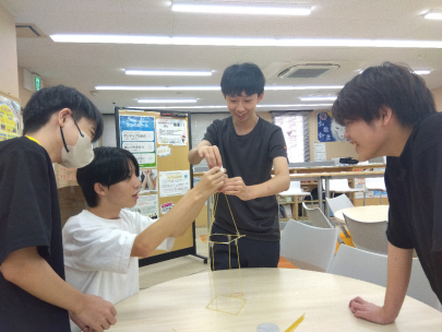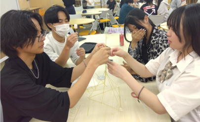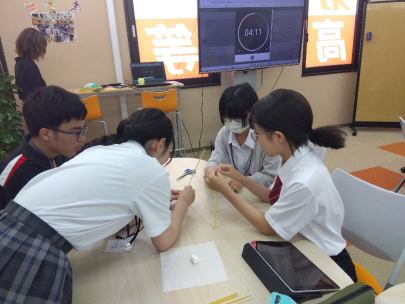 パスタ(と、セロテープ)だけで作る協同工作で、チームのそれぞれの得意・不得意を共有し、知恵を出し合った授業です☆