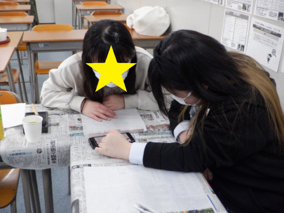 この日は高校生の先輩たちと一緒に、新年の「書き初め」を行いました。