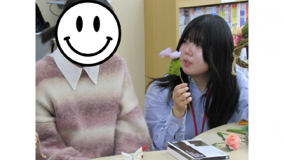 リボンを巻いたりお花をつけたり中学生同士で協力をして取り組みました。