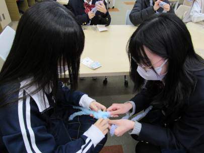 最初は作るのが難しそうと思っている生徒が多かったですが、作りだすと10分もかからず、かわいらしい人形を完成させていました。