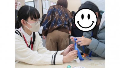 リボンを巻いたりお花をつけたり中学生同士で協力をして取り組みました。