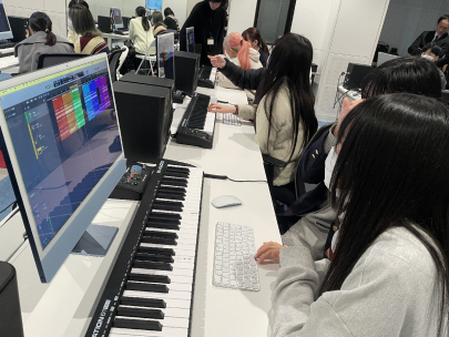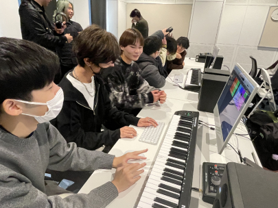 こんにちは!第一学院中等部熊本キャンパスです(^^♪ 先日、 大学の授業体験に中等部の生徒も参加しました。今回は音楽大学でパソコンなどの機器を使って音楽を作っていきました。難しい作業もありましたが、日ごろからパソコンやスマホを使いこなしている生徒も多いためか、中等部生も高校生と一緒に時間内に音楽を作ることができました♪ 中等部生もこういった体験やサークルに参加することができ、高校生になったときの自分を想像することができます!