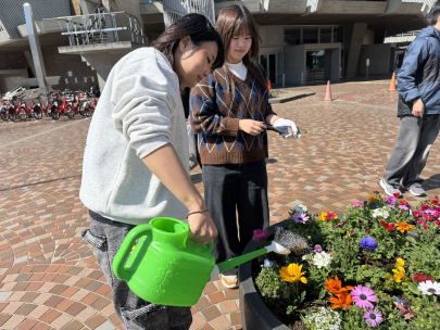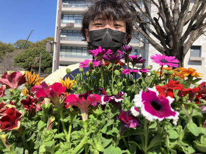 第一学院では定期的にボランティアで、熊本城付近の街路の花の世話をしており、
