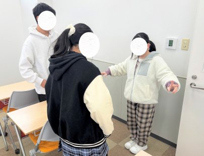 3人1組になり、視覚ゲームでは1人が3か所見た目を変えて変わったところを残りの2人が当てるゲームをし、