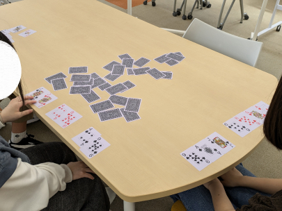 その後はトランプを使い、足したり引いたりして「-8」になるように組み合わせるゲームを行いました。