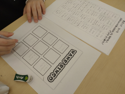 他にも、シートから自分のことに当てはまる英語表現を9つ選び、それを元にビンゴ大会を行いました。