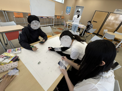 今回は清書に入りましたが、テイクアウトができるお店とできないお店に分けてくれたり、お店の種類に分けて描いてくれたりと、最後までこだわって取り組んでくれました◎