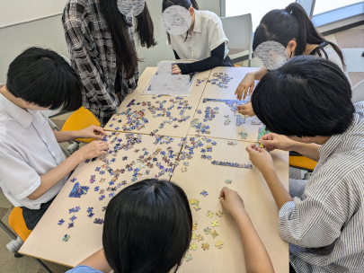 他にも、淡々とパズルを完成させていく中学生やチーム内の声掛けに対し、欲しいピースをすぐに見つけてくれる中学生がいたりと、一人ひとりが役割を見つけ、協力しあいながら完成させていきました。
