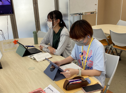 学習会の時間では、デジタル学習コンテンツ「すらら」を使って小中学校の学習内容の復習をしたり、学校の宿題をしたりしています。