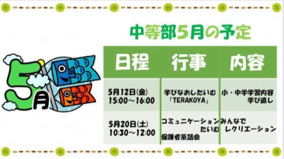 中等部5月の予定です(*´▽`*)!