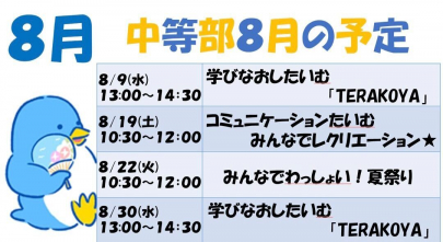 中等部8月の予定です!