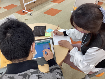 今日は、無学年式オンライン教材『すらら』を使用しながら、学習支援をしています。