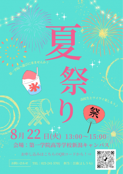 第一学院では、8/22(火)13:00~15:00に夏祭りを実施します!
