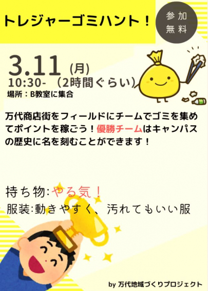 キャンパスのある万代地域を探求し、地域課題の解決に向けアクションする「万代プロジェクト」プレゼンツの企画のご紹介です♪