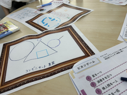 続いて2つのグループに分かれた後、ピカソゲームを行いました☆