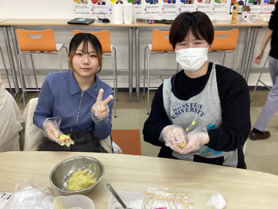 今回作ったのは「スイートポテト」。お家でもあまり料理を作ったことがないとお話ししてくれる中等部生もいましたが…