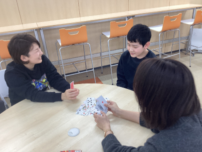 午後には個別での交流タイム♪カードゲームで盛り上がり、笑顔が見られる瞬間も多くありました!