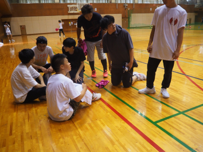 一緒に体を動かしたり、チーム分けやルールなども一緒に話し合いながら進めることができるので、ここでも仲良しの先輩ができること間違いなし(/・ω・)/