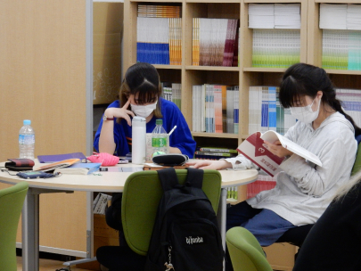高校生も難関大学への受験を目指している人や検定の勉強、入試の為の作文、など集中して自分のことに取り組みたい人が集まるので落ち着いた静かな雰囲気となっています。