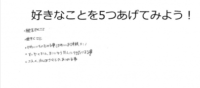 自分の好きなものを5個あげてみよう、ということでたくさんあげてくれましたよ~(*´▽`*)