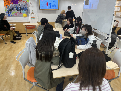 今回も「楽しむこと」をポイントに、みんなでコミュニケーションゲームをしました。質問をし合って共通点を見つけるゲームなのですが、以前は対面で話をすること自体が苦手だった中学生も、相手のことを引き出す質問ができるようになっていて、成長に驚きました!