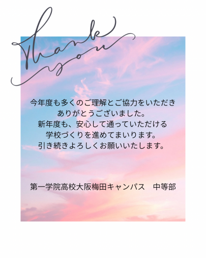 今年度も第一学院高校大阪梅田キャンパス 中等部の教育活動にご理解とご協力をいただき、ありがとうございました。