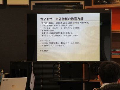 「東京観光専門学校カフェサービス学科」より講師の先生をお迎えして実施しました。まずは専門学校のご紹介から。