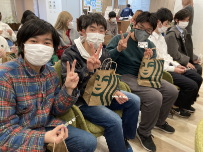 最後に、全員にケーキがもらえるビンゴゲームを実施しました!ビンゴゲームでビンゴになった人から好きなケーキをお土産に持って帰れるというもので、全員が笑顔で終えることができました!