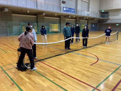 「ソフトテニス」というと皆さんは小学校や中学校で体験された方も多いのではないでしょうか。公式とは違い、ゴム製のボールで打ちやすいですが、軽いために打つ方向が難しいところに楽しさがあるように思えました!