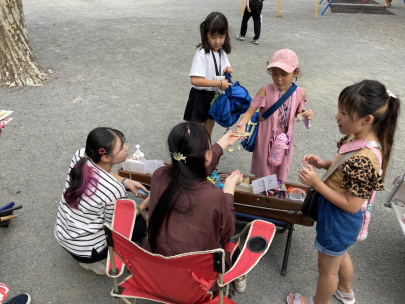 湘南藤沢キャンパスでは、そんな活動に参加し、遊びや勉強を通じた地域への貢献に参加させていただいています。今回は、中等部の方にも参加してもらい、「ボランティアのいろいろな形」を見てもらうことができました。小学生のパワーに負けないように遊んだり、駄菓子販売ではお小遣いの計算ややりくりなども勉強の一つになっている様子でした。