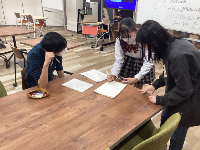 意外と難しい中学校の「数学」。三人で意見を交わしながら考えました!